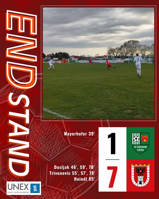 Aufgrund einer überragenden 2. Halbzeit ging des Team des SCE beim Nachbarn Trausdorf als 7:1-Sieger vom Feld. Zur Pause lag die Cekic-Mannschaft noch 0:1 zurück. Anel Dosljak legte mit drei