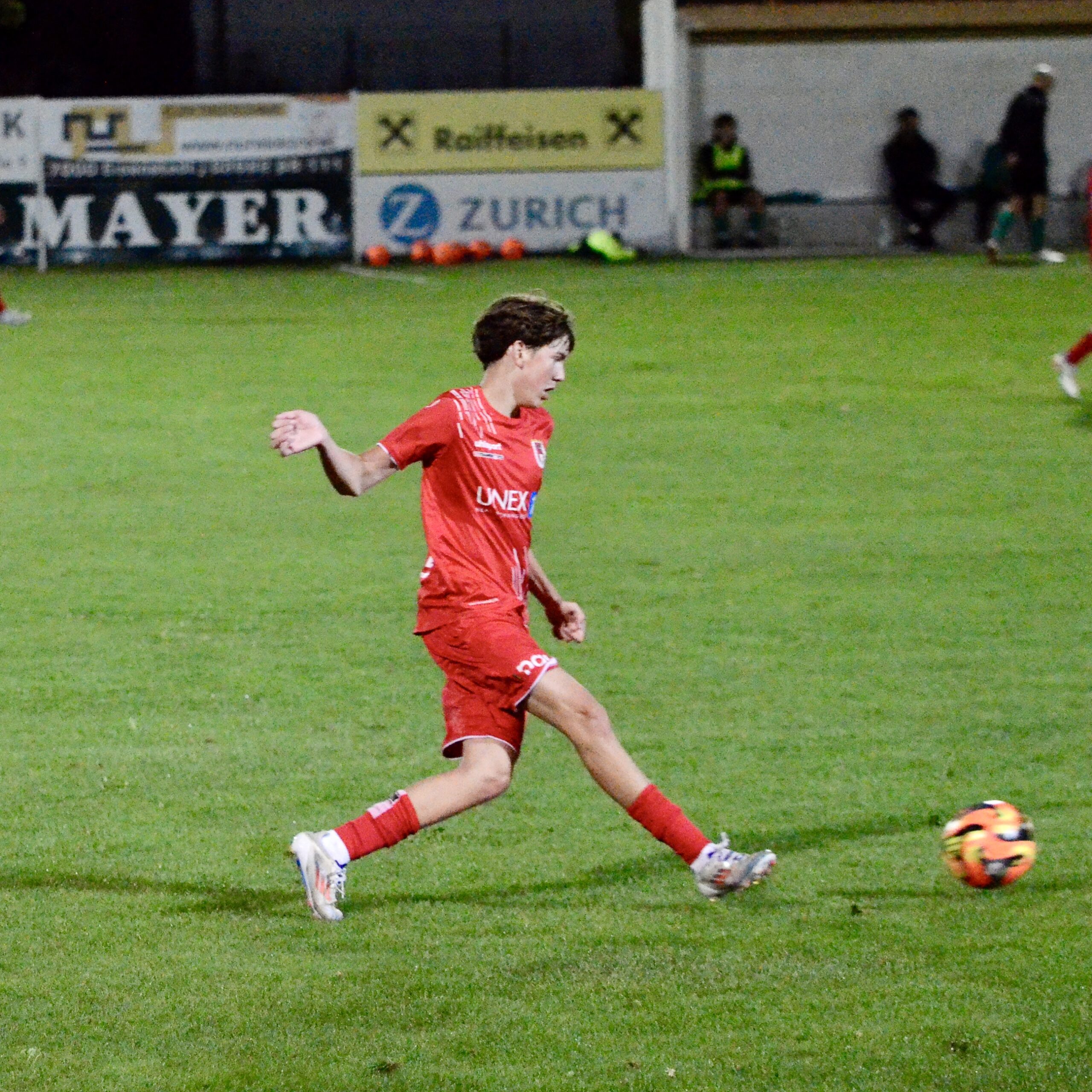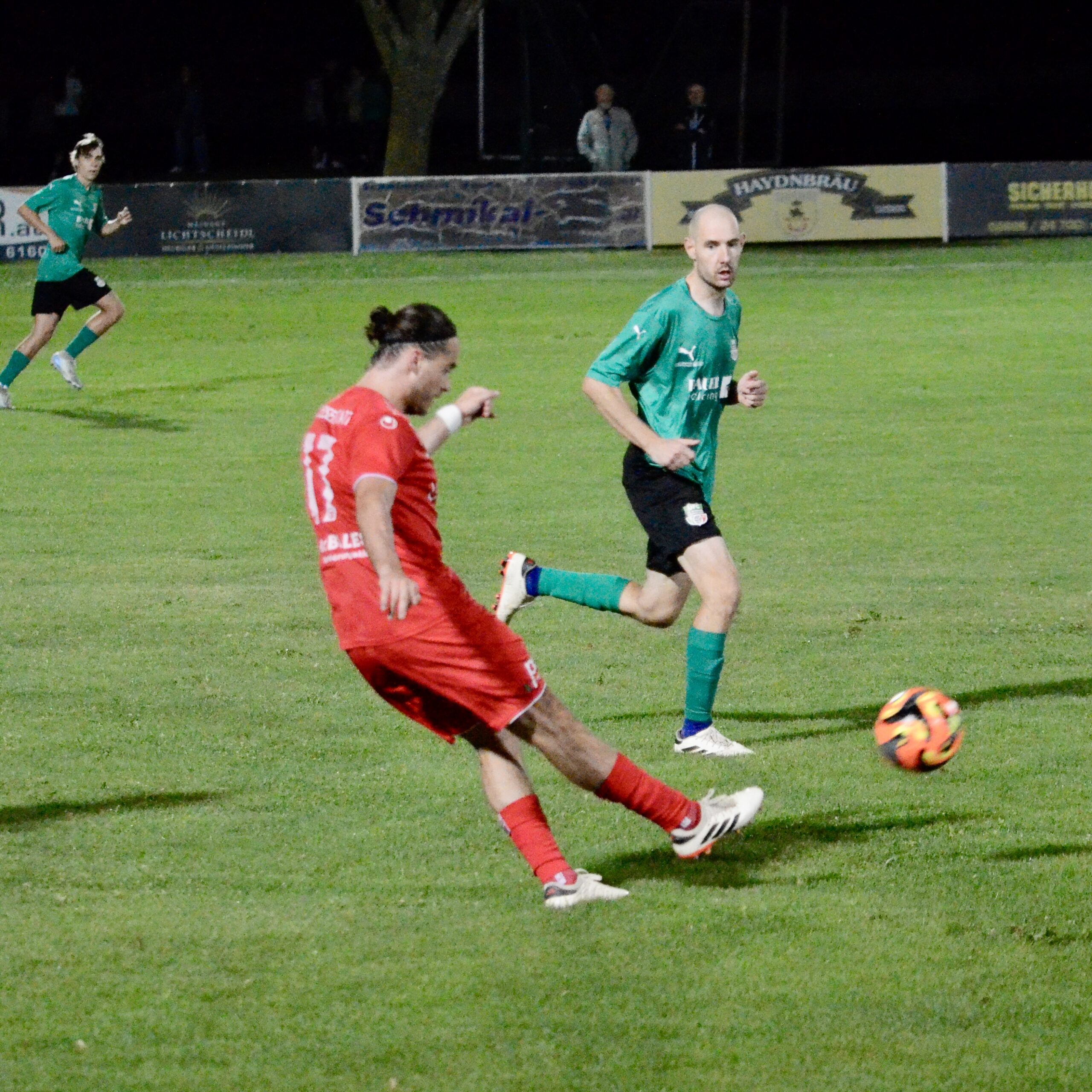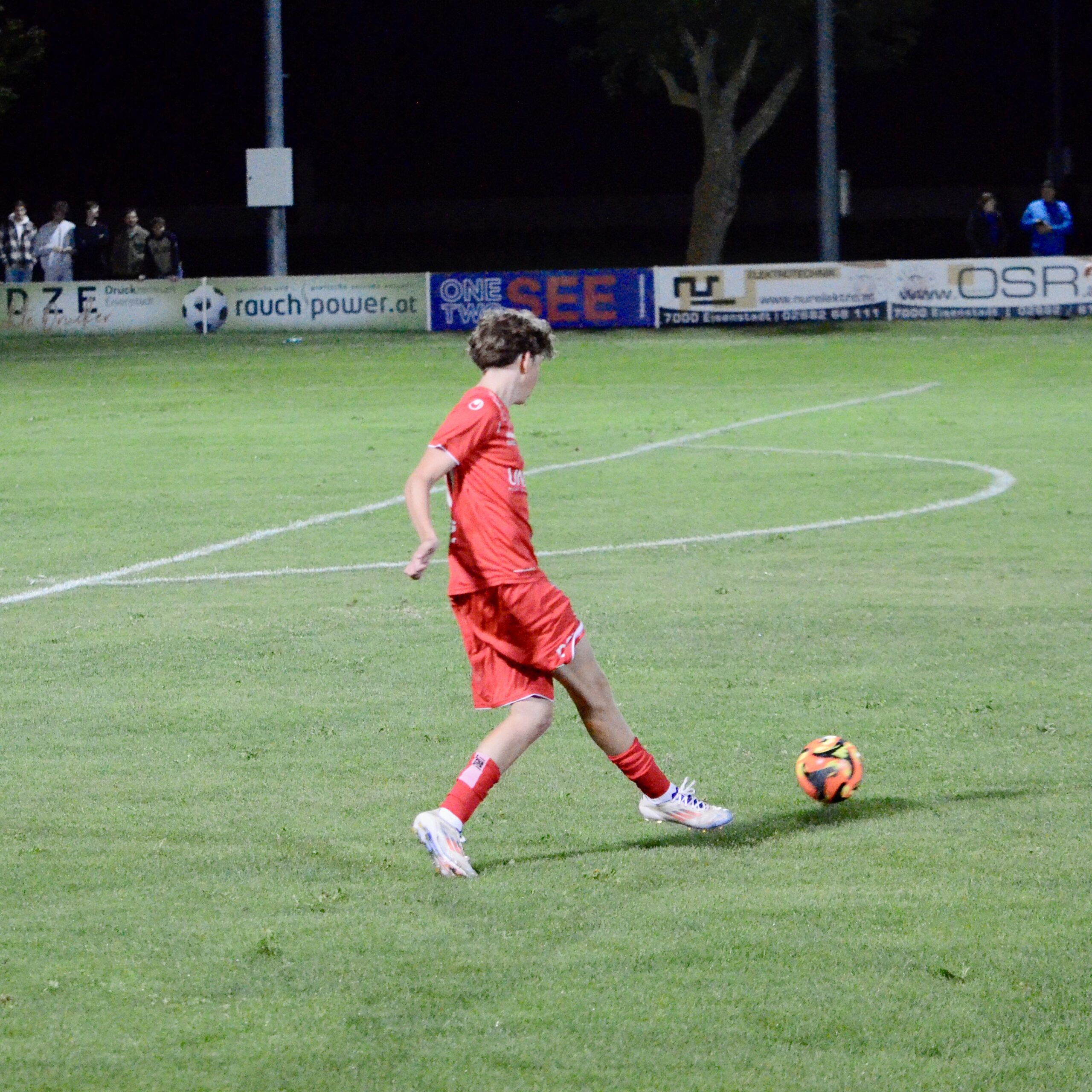 Schon in der 3. Minute zeigten die Gastgeber aus dem Stadtteil St. Georgen ihre Gefährlichkeit. Ein Freistoß von Kilian Buchreiter knallt an die Stange. Nur 3 Minuten später kommt Max Manninger aus linker Position aus kurzer Distanz zum Schuss, den Abpraller kann Christopher Pinter per Kopf nicht verwerten. In Minute 13 ist es dann aber soweit. Max Manninger wird von der Abwehr allein gelassen. Er kann einen Sololauf aufs Tor starten und zum 1:0 abschließen.