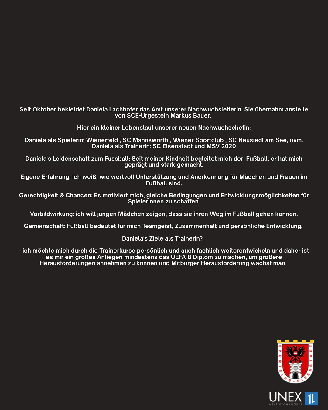 Seit Oktober leitet Daniela Lachhofer unseren Nachwuchsbereich. Mit großer Fußballerfahrung als Spielerin und Trainerin setzt sie ihren Fokus auf faire Entwicklungschancen, Teamgeist sowie die gezielte Förderung von Mädchen und Burschen – sportlich wie menschlich.